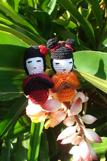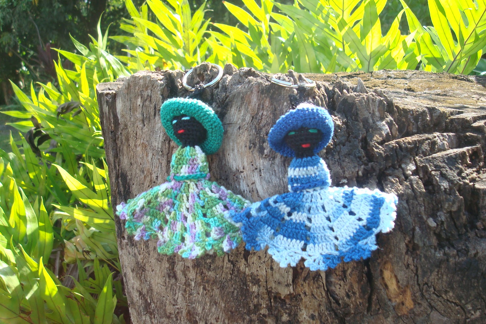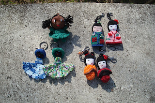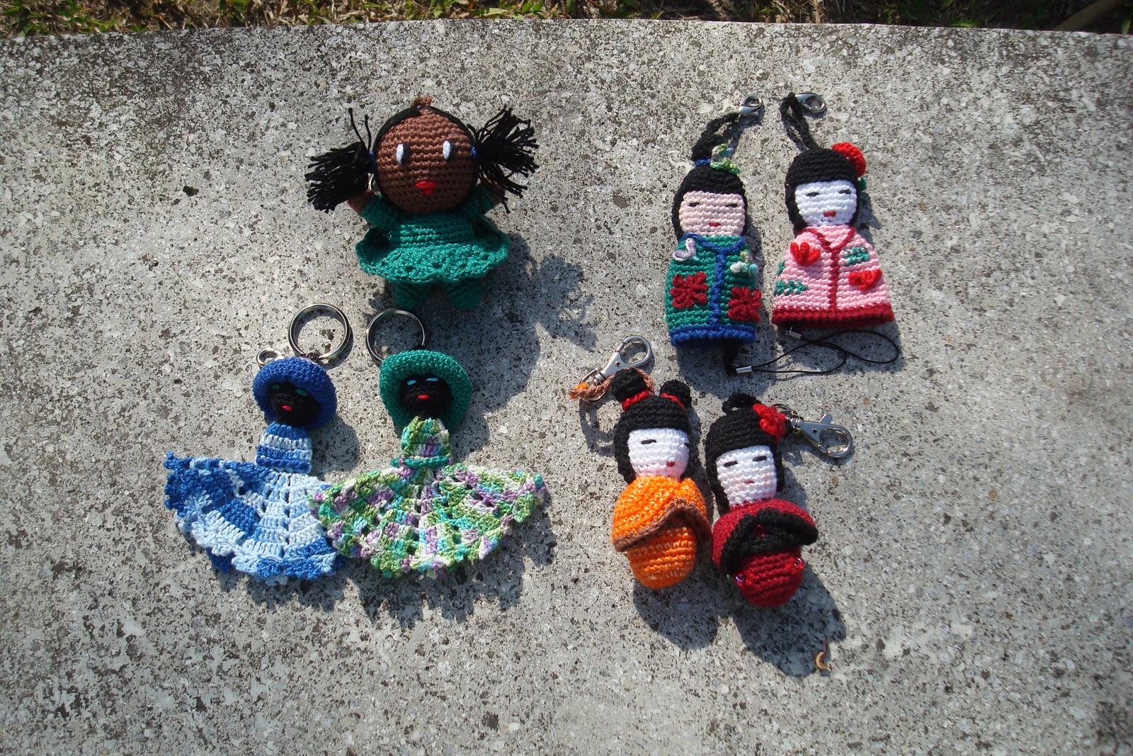 Os acessórios não ficaram muito legais, eu não tinha mais linhas adequadas à palheta de cores dos bonequinhos.